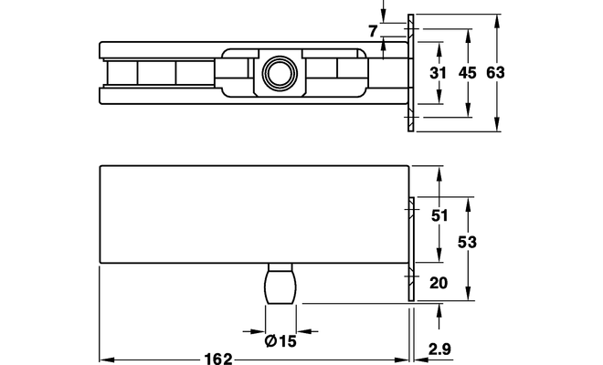 Петля нижня для дверей маятникових HAFELE нержавіюча сталь 162 x 51