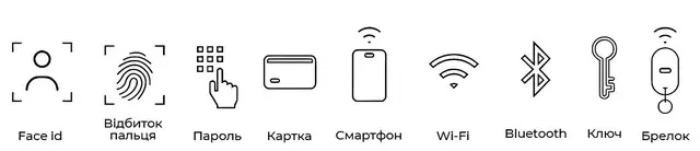 - багатофункціональні методи доступу (відбиток пальця, PIN-код, картка, смартфон, механічний ключ);