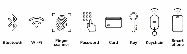- багатофункціональні методи доступу (відбиток пальця, PIN-код, картка, смартфон, механічний ключ);